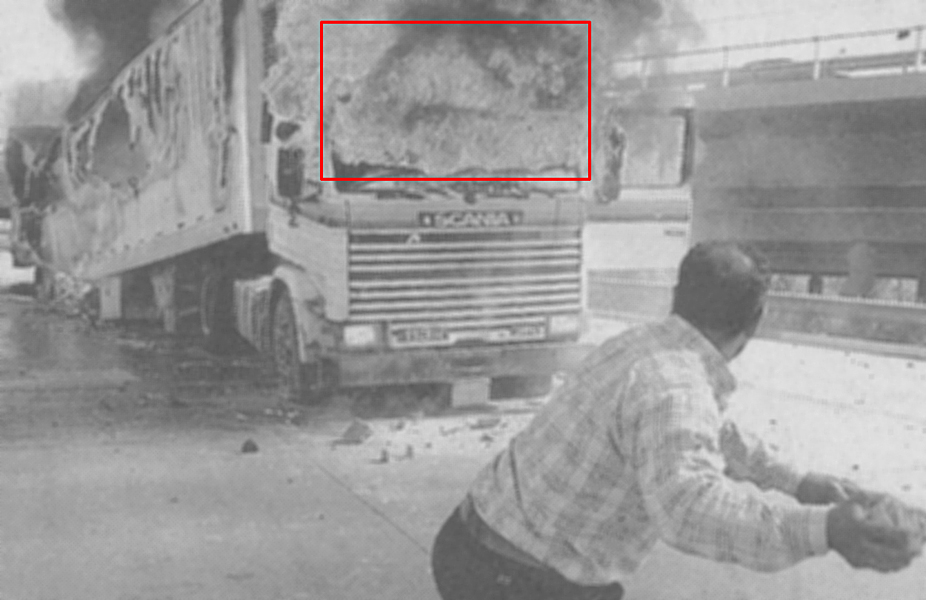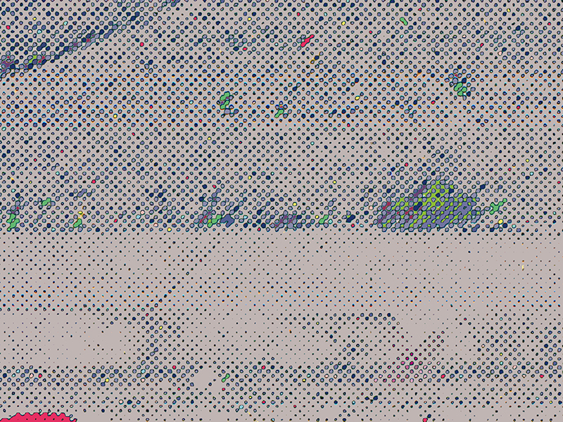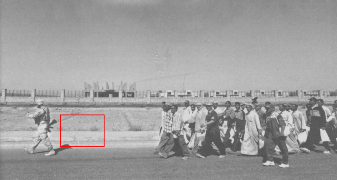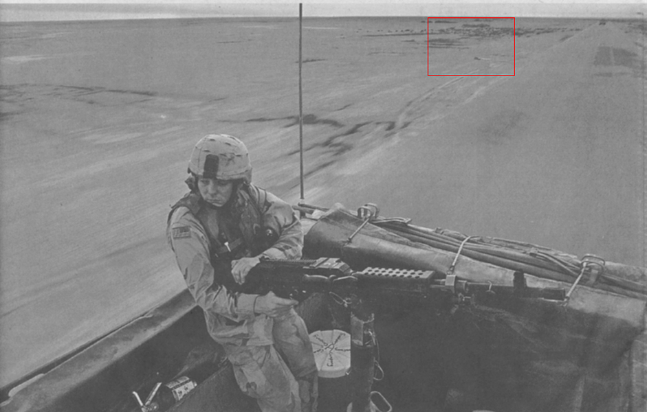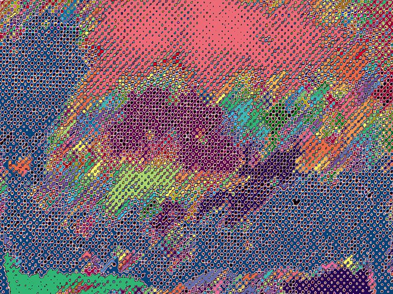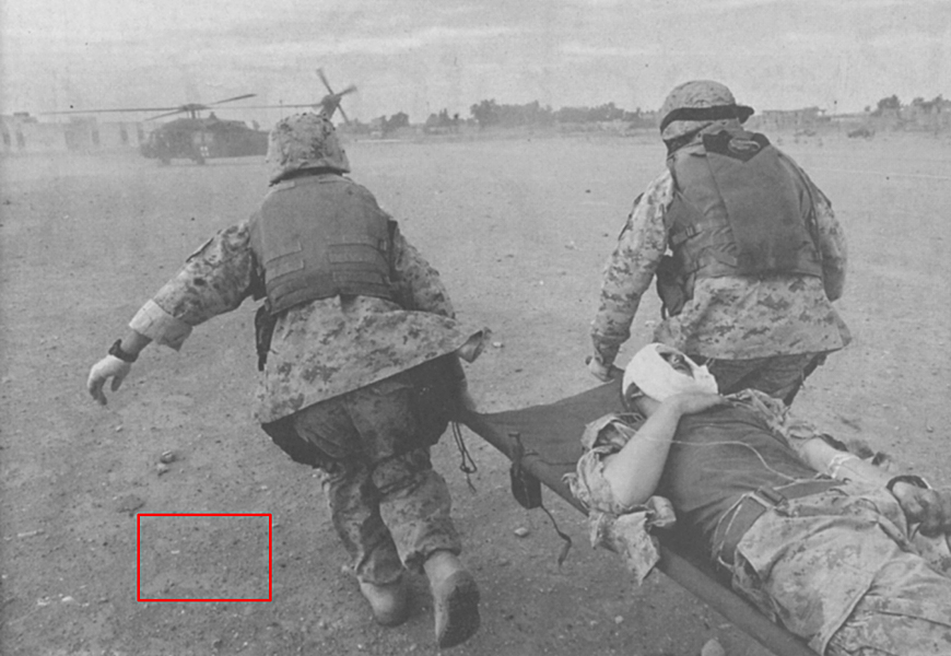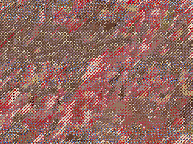 Truth Emergent (2004) is based on New York Times news photographs of activities during the early days of the US involvement in Iraq. The thumbnails show the source image directly beneath each response work. As indicated by a red box on each source image, a small area was initially captured and subsequently upsampled to 30 by 40 inches in the derivative works. Coloration in the final pieces is based on a series of self-imposed rules coupled with randomly selected color palettes.